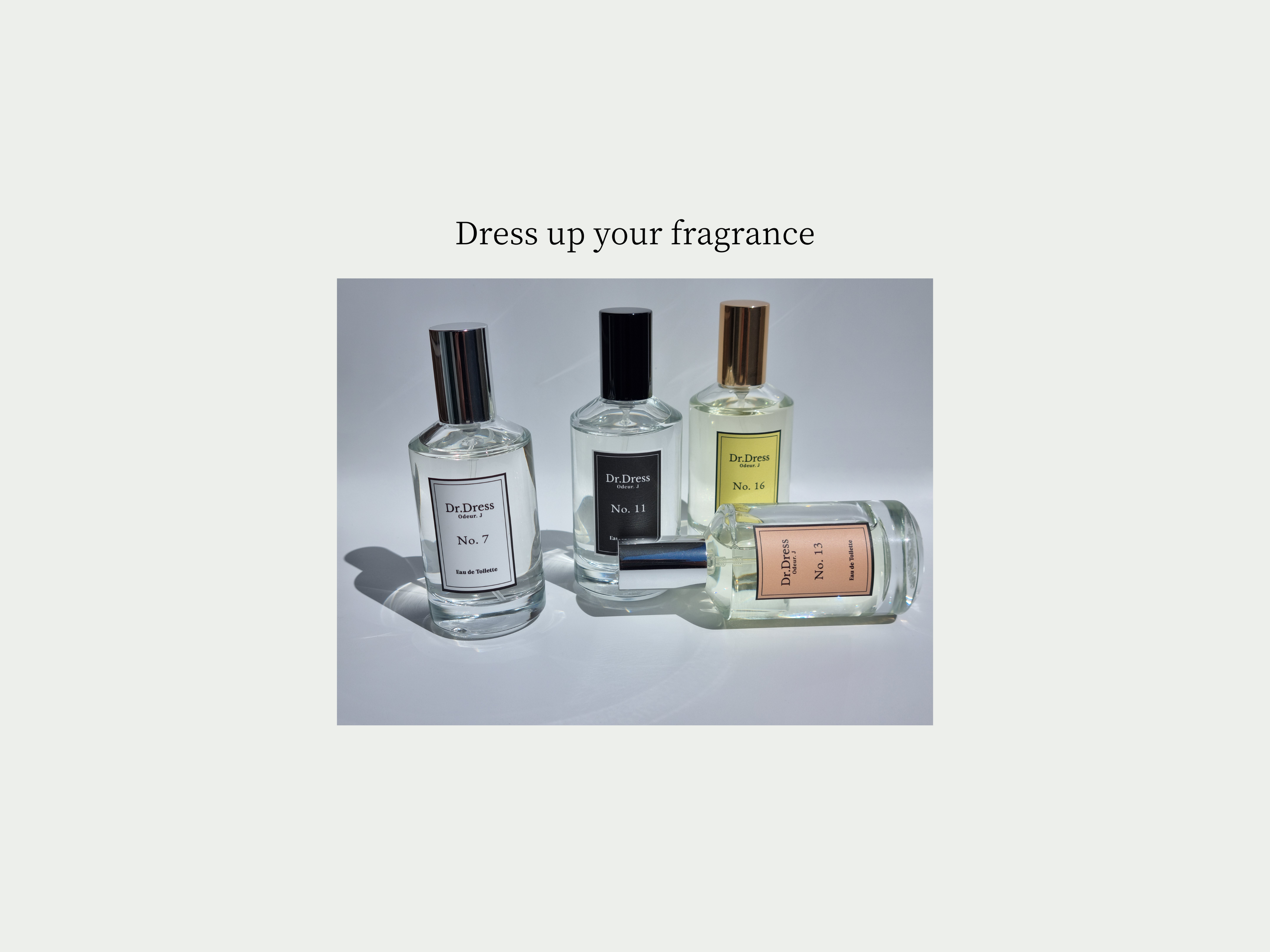 Dr.Dressは、香りを通じて目に見えない自信をスタイリングし、最もあなたらしく輝く瞬間を作り出していきます。その香りは、あなたの新しい始まりのためのドレスです。